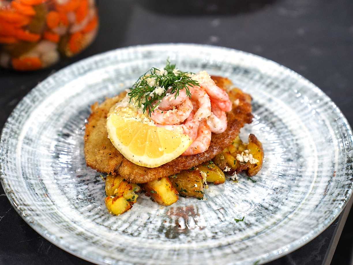 Kycklingschnitzel med ljummen potatissallad
