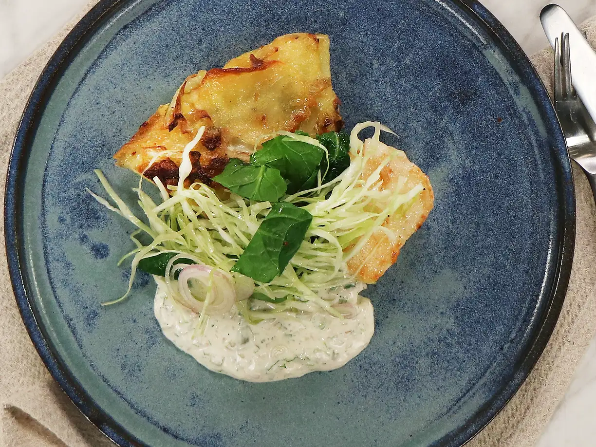 Adams brottartortellini med bakad torsk och krispig jordärtskocka