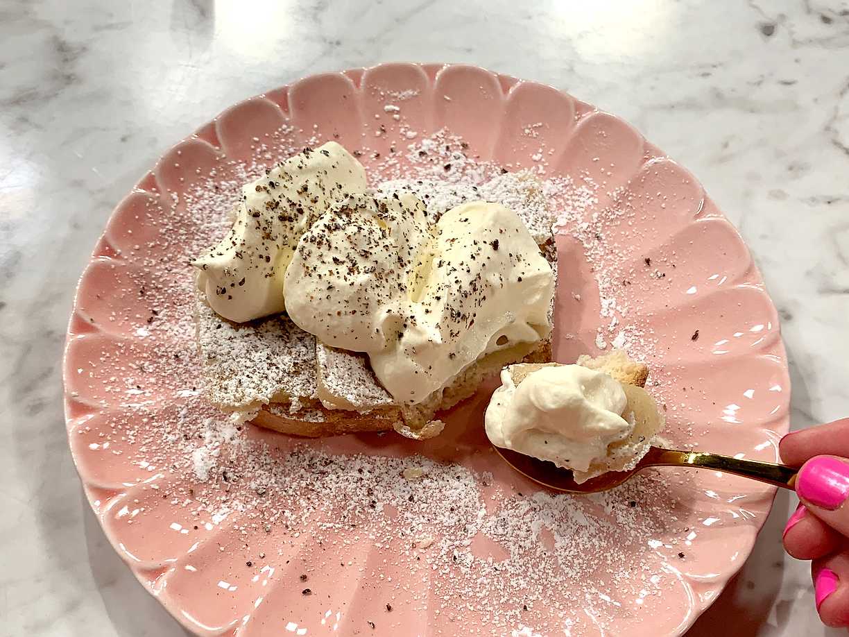Hallonsorbet fylld med vaniljmascarpone på chokladkexbotten
