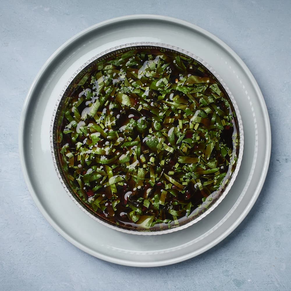 Sojamarinerad svamp med lövbiff och sesammajonnäs