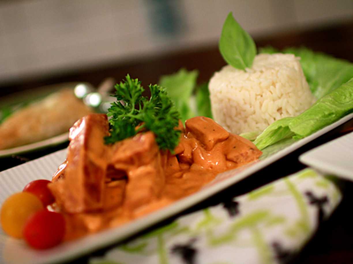 Baconinlindad kycklingfilé i mango chutney och grädde