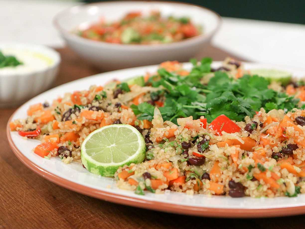 Laxbiffar med dilltzatziki och blomkålsbulgur