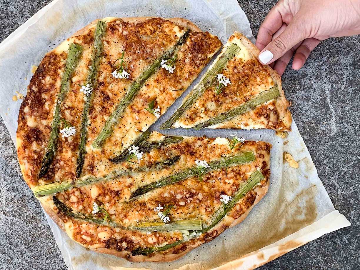 Vegansk pizza med sötpotatis, mandel och svartkål