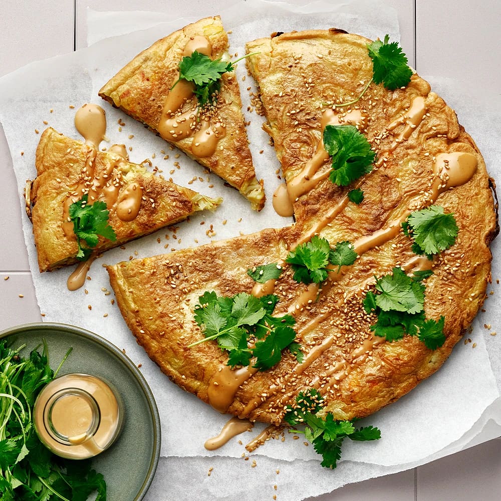 Bananquesadilla med hasselnötskräm och hackade jordnötter