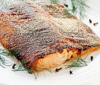 Baconlindad laxfilé med potatis- och blomkålsstomp