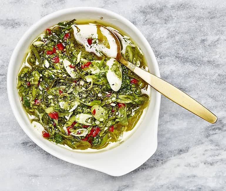Persilje- och vitlökspapardelle med paprikacrème