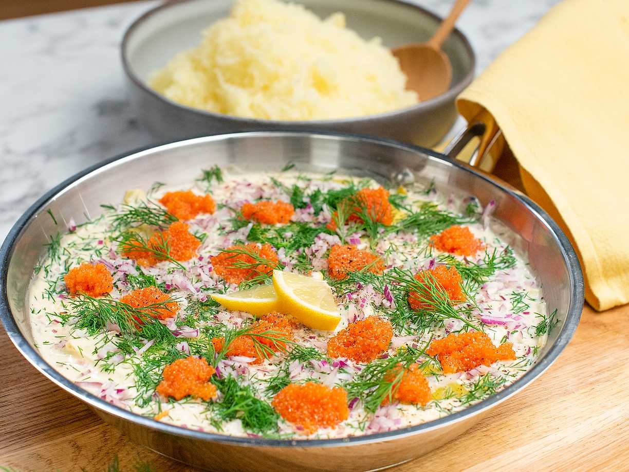 Torsk i ugn med Västerbottensost och stuvad spetskål
