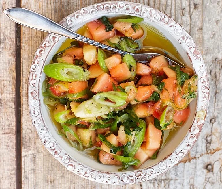 Sötpotatishummus med vegansk fetaost och rostad spetspaprika