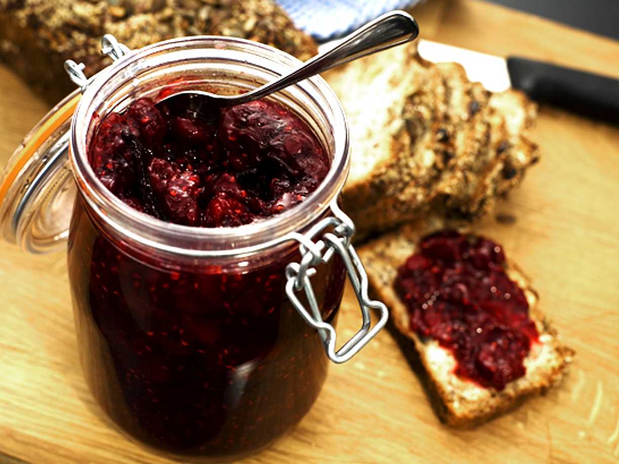Chiapudding med kokos, lime och lakritsmarinerade bär