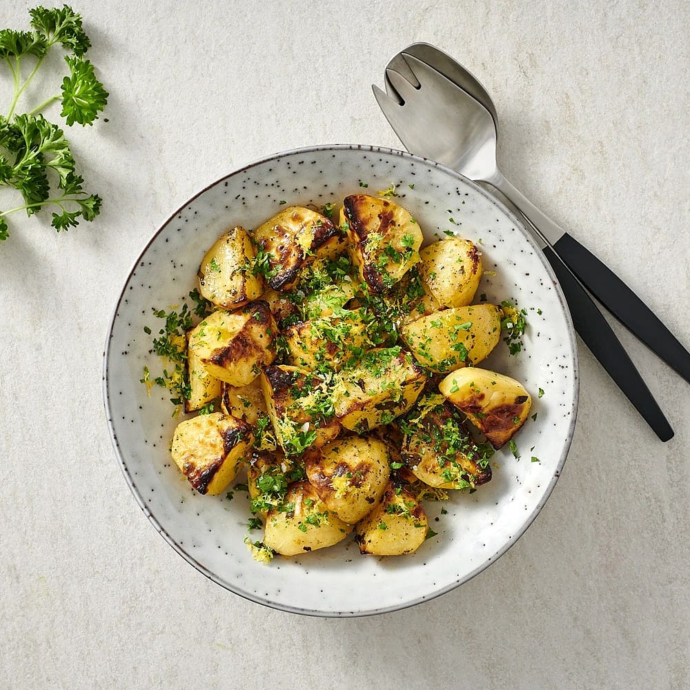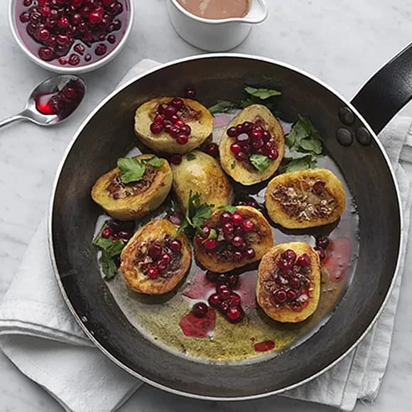 Vitlöksrostad spetskål med örtig smörsås och hasselnötter