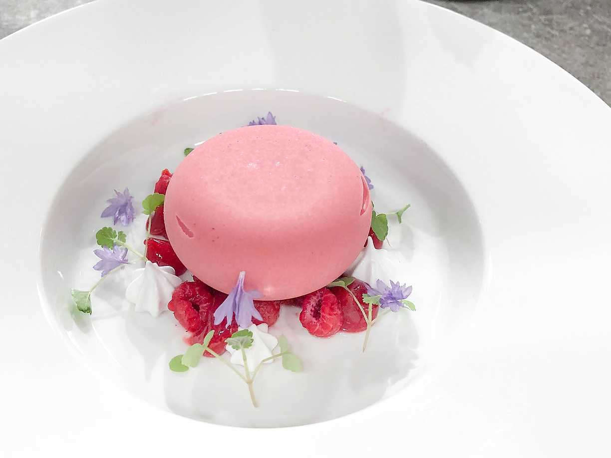 Blåbärsparfait med lemoncurd och mandelbiskvier