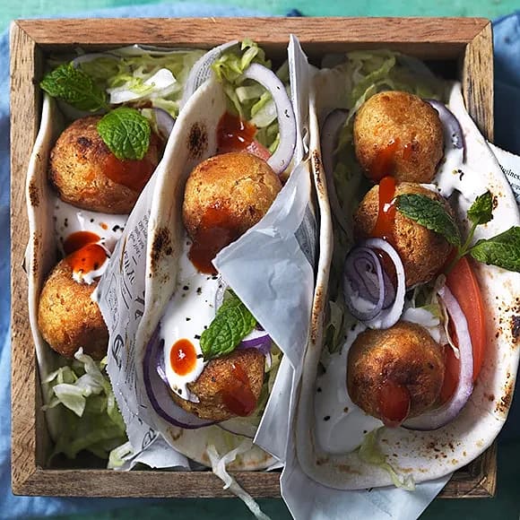 Veganska köttbullar med gräddsås och hasselbackspotatis