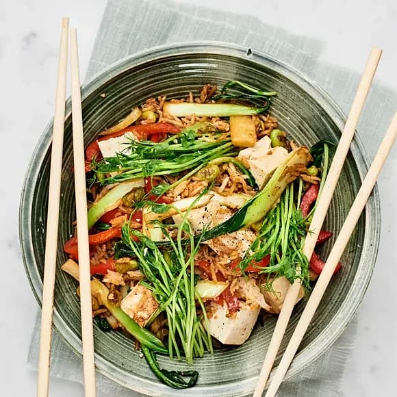 Vitlöks- och mandelstekt torsk med paprikasallad