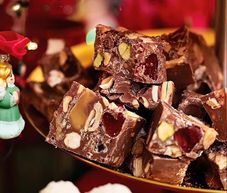 Svampravioli med krämig vitvinssås, rostade pinjenötter, ruccola och svart tryffel