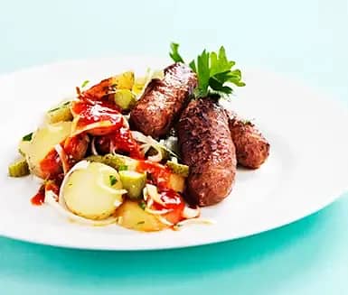 Klassiska pannbiffar med klyftpotatis och broccoli