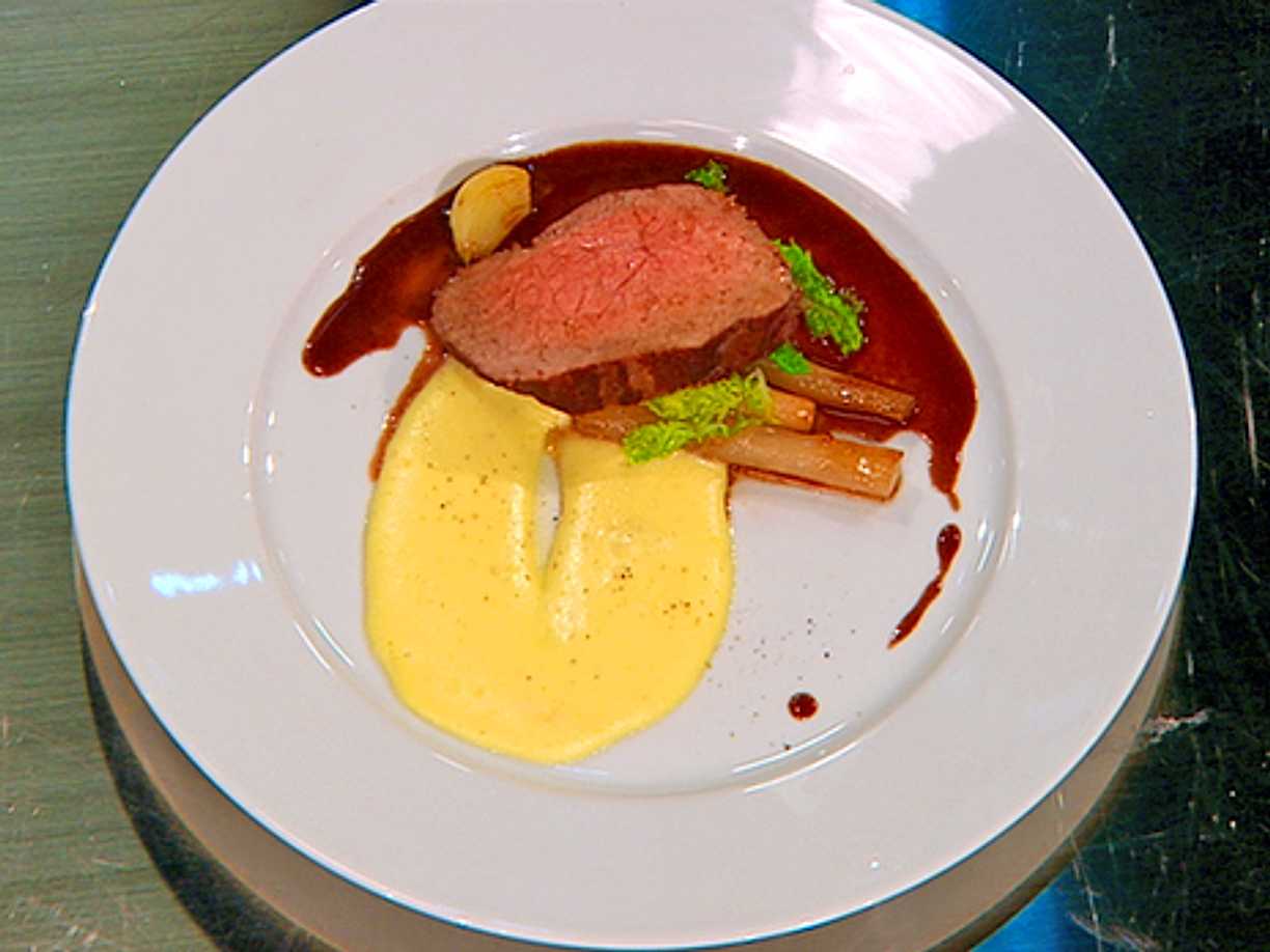 Helstekt fläskytterfilé med rosmarinsås och lättkokta grönsaker