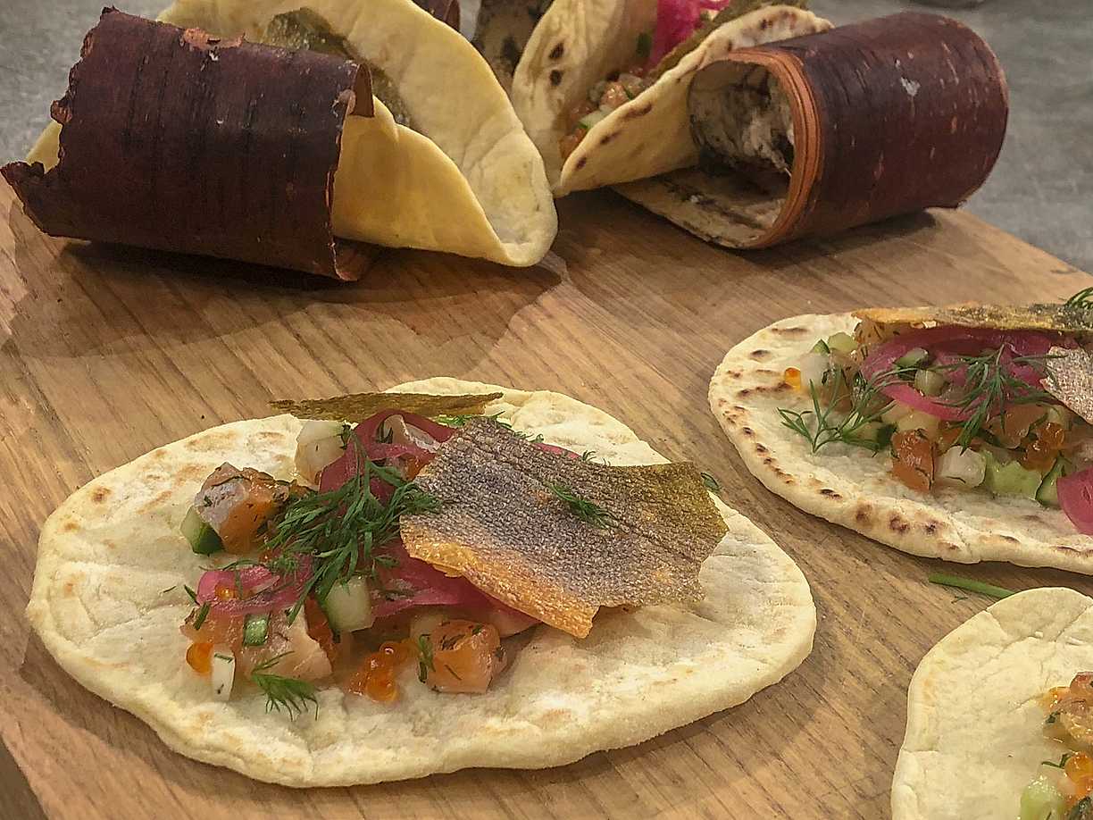 Gáhkkutaco med rödingtartar och dillmajonnäs