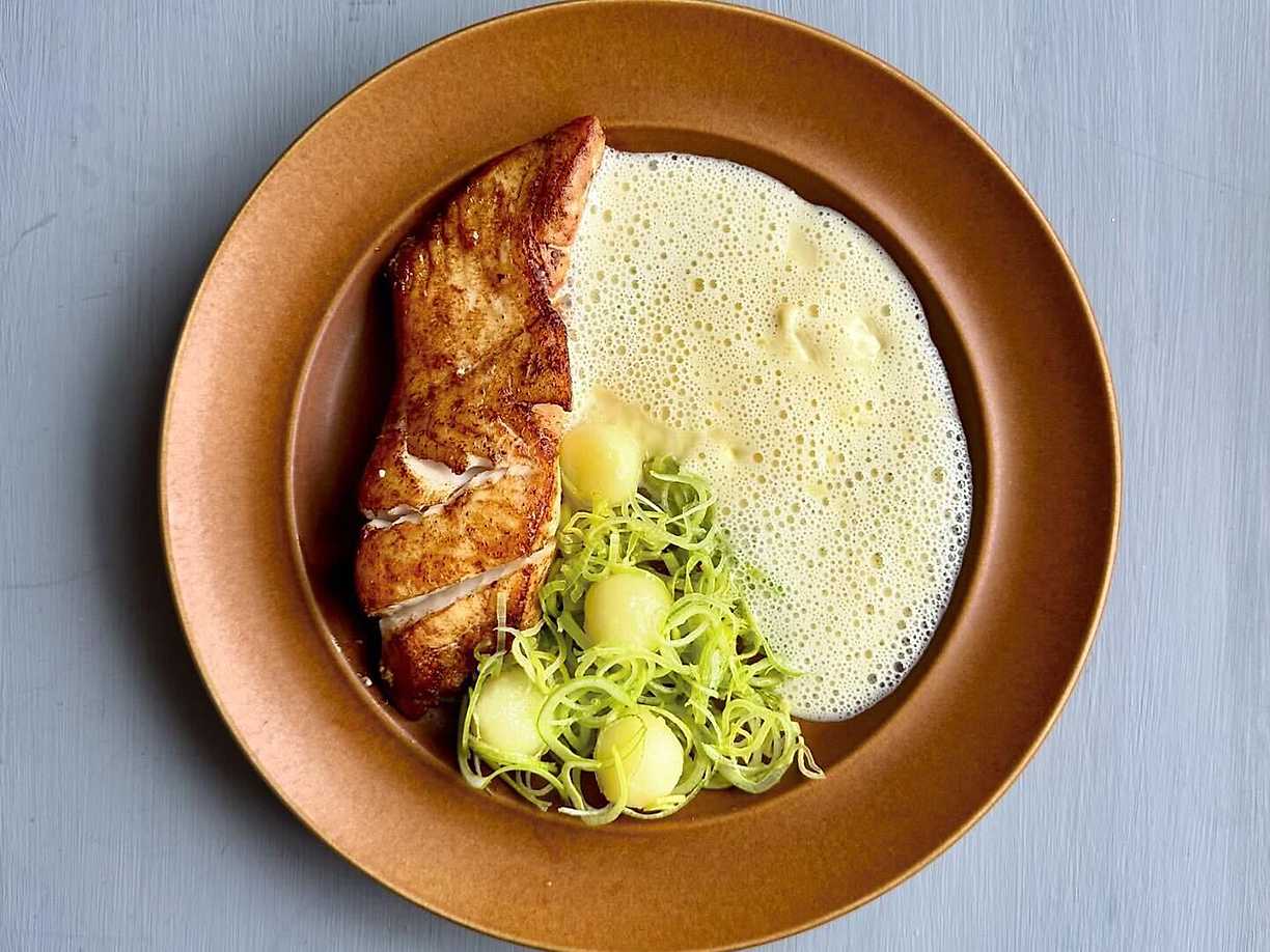Smörstekt torskrygg med krossad potatis och citronkräm