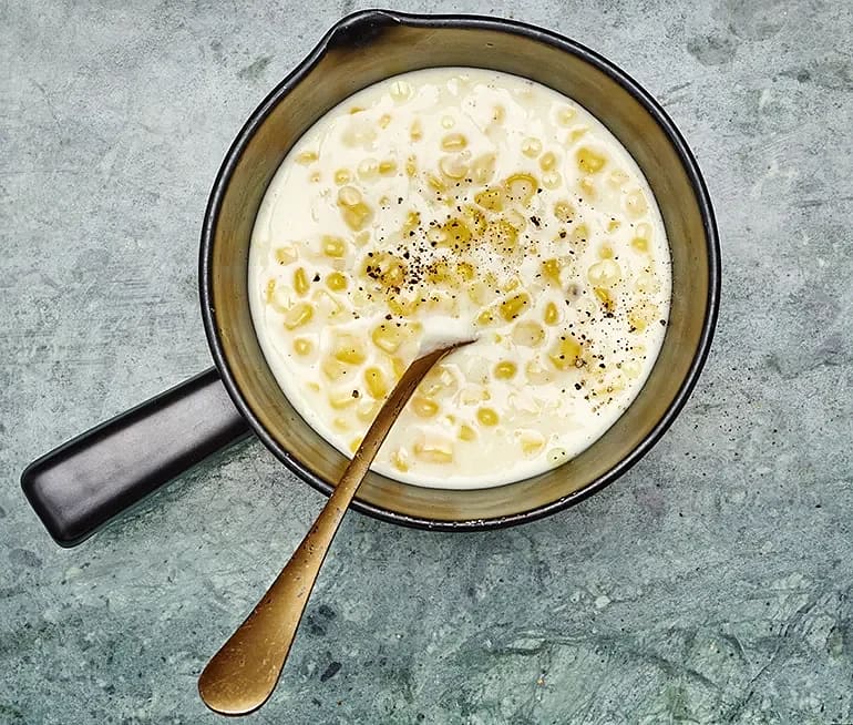 Rotfruktschips med tångkaviar och vispad havrekräm
