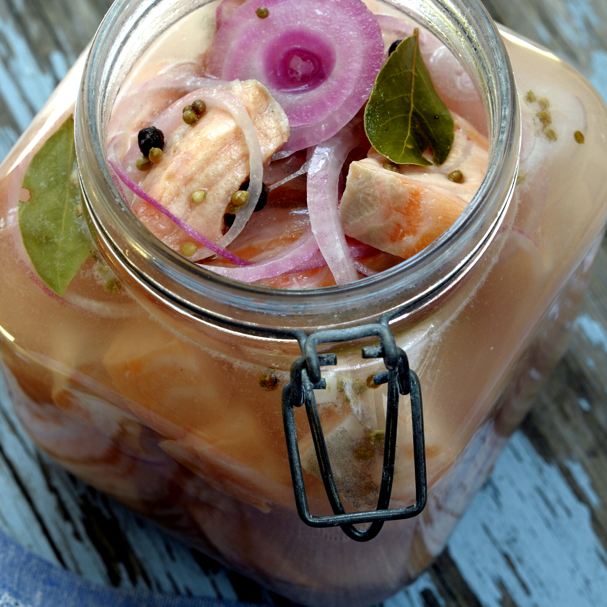 Citronbakad skreislag med friterad kapris, basilika och räkor