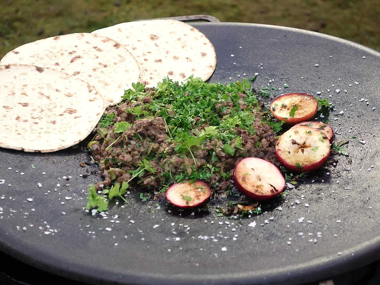 Libanesiskt bröd fyllt med köttfärs och hummus