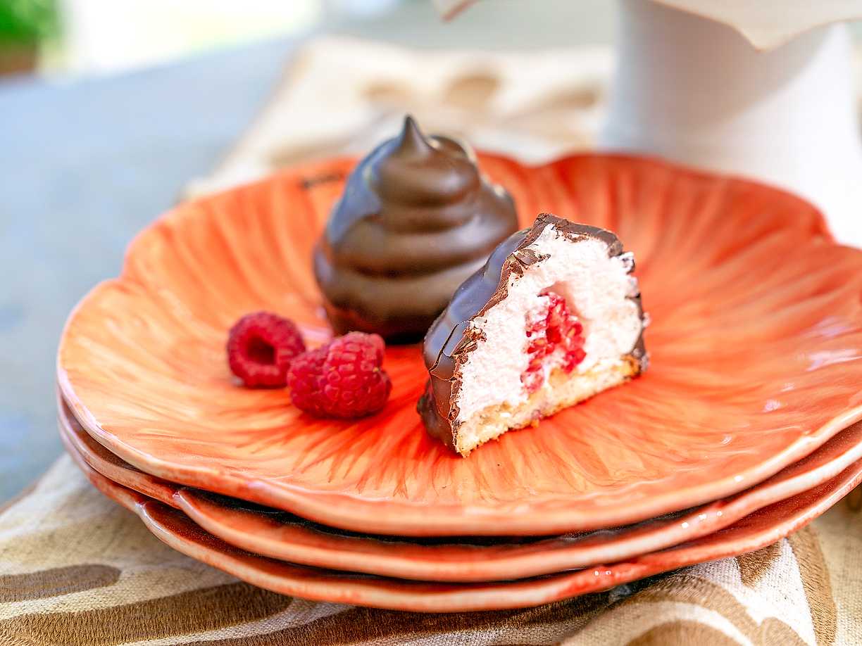 Hallon- och limeparfait med kanderade valnötter