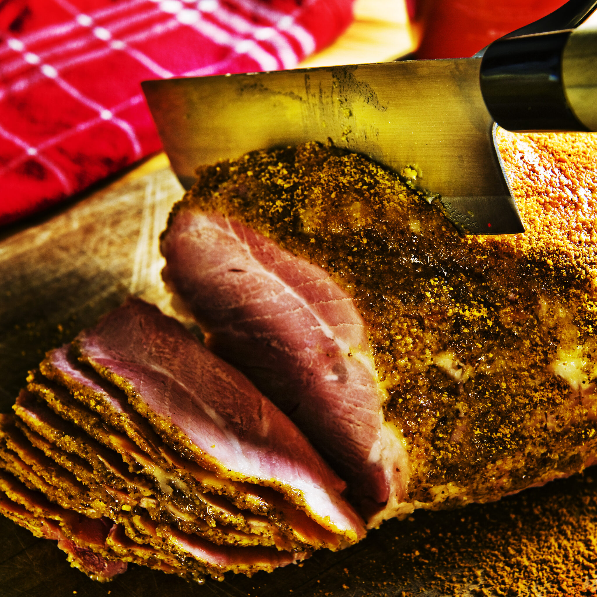 Helstekt kalkon med gräddsky, olivpotatis och råstekt brysselkål