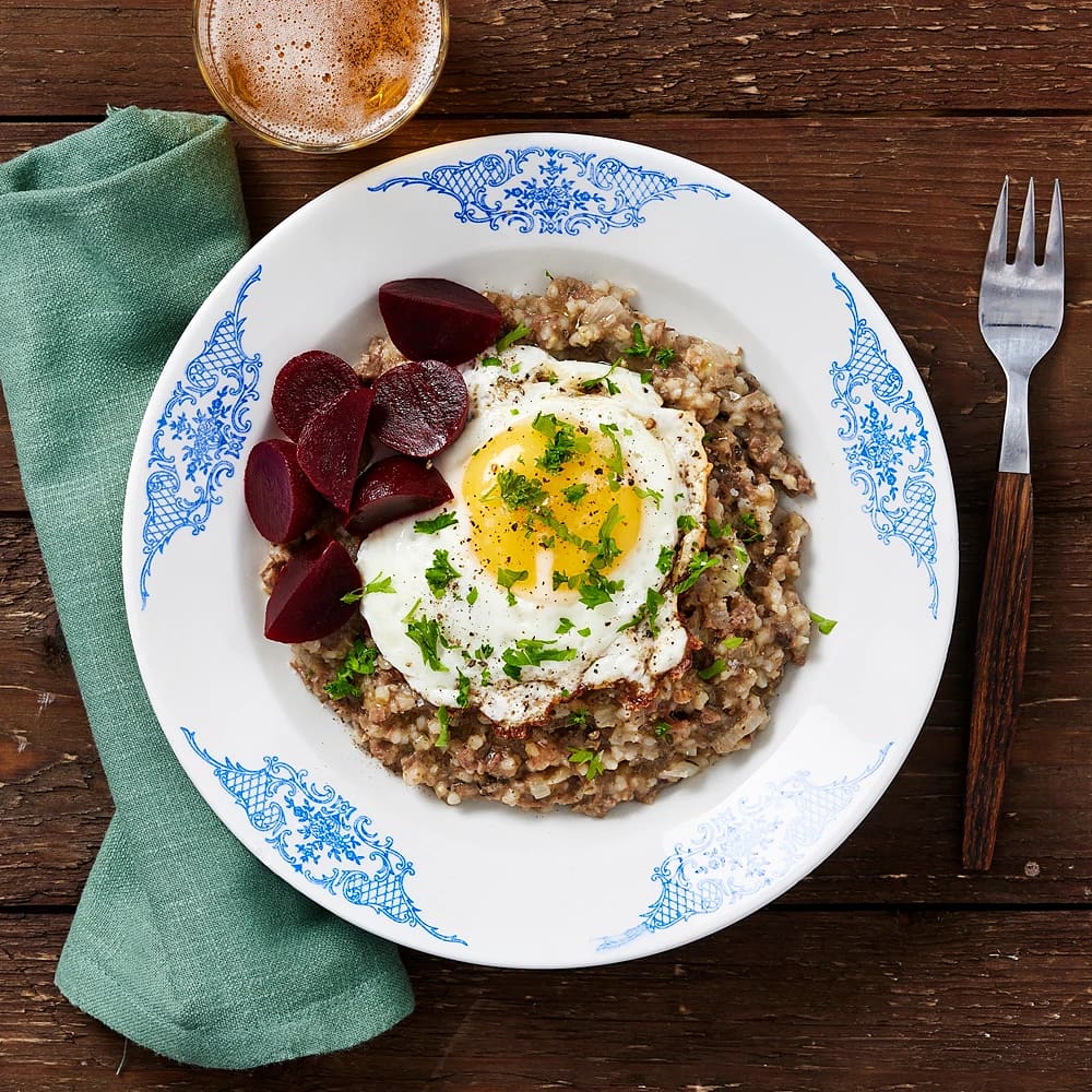 Helbakad rotselleri med skirat smör, rårörda lingon och stött kryddpeppar