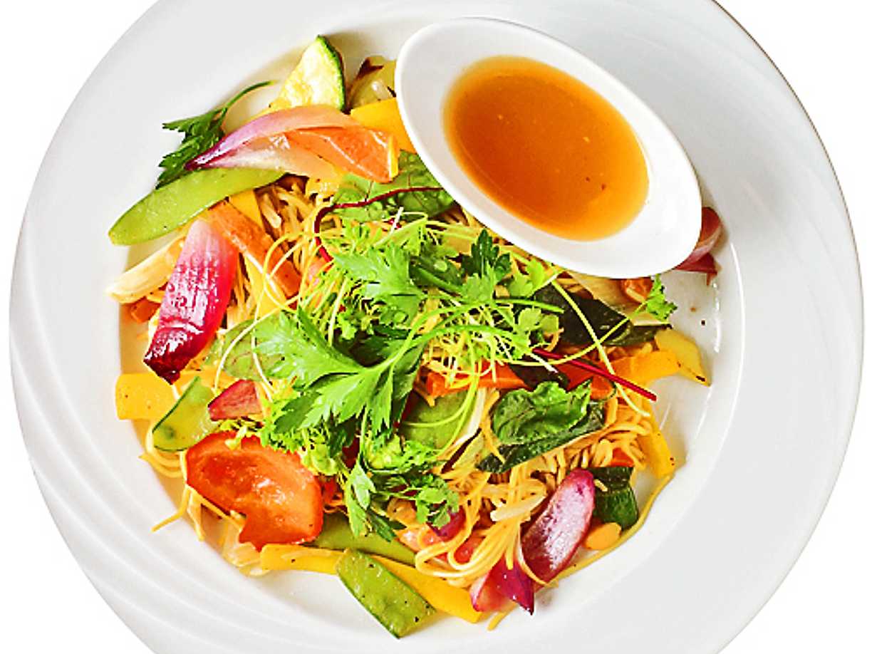 Roquefortkrämad kycklingsallad med sockerärtor och champinjoner