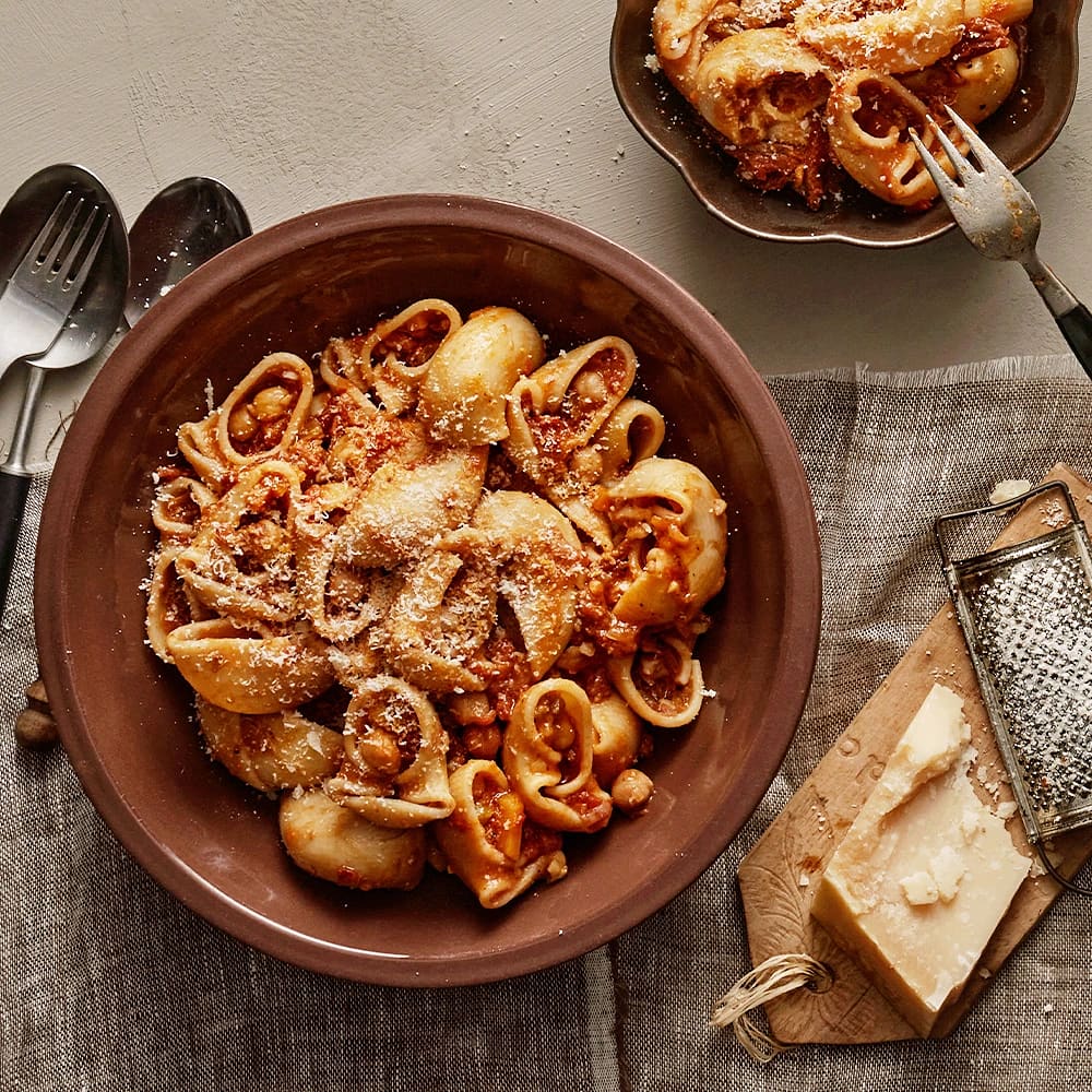 Chilitagliatelle al ́ ouvo med torsk i tomatsås