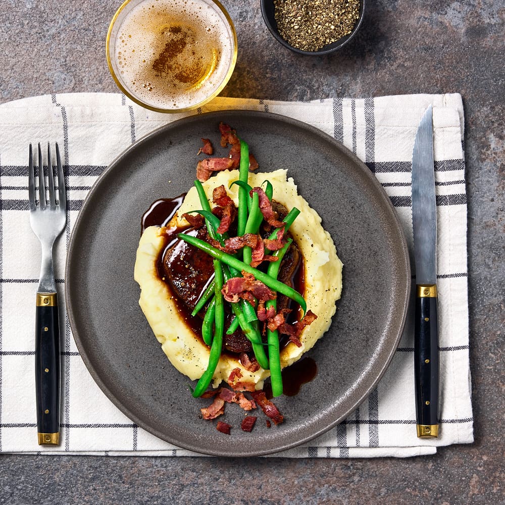 Smördegsinbakad fläskfilé med champinjonsås och potatisgratäng