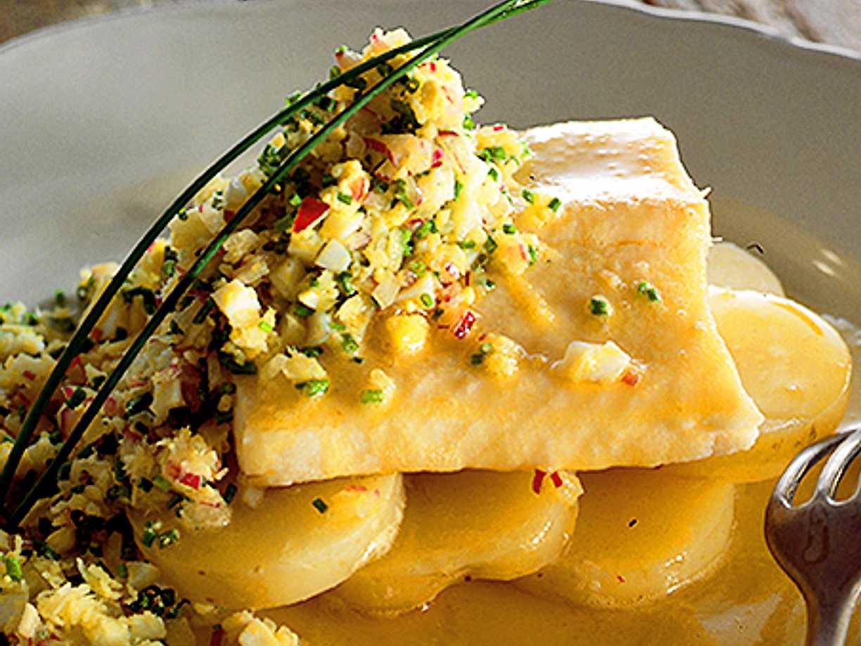 Oxfilé med Västerbottensduchesse, samt flamberad grönpepparsås