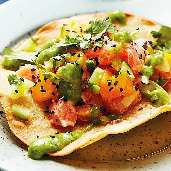 Tostada med poké-ceviche