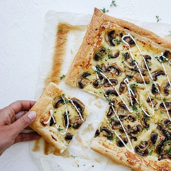 Snabb smördegspizza med svamp