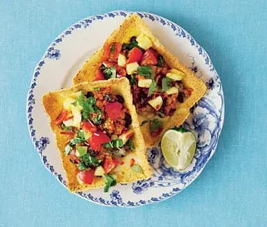 Fisktacos med lax, rökt paprikamajonnäs och syrad lök