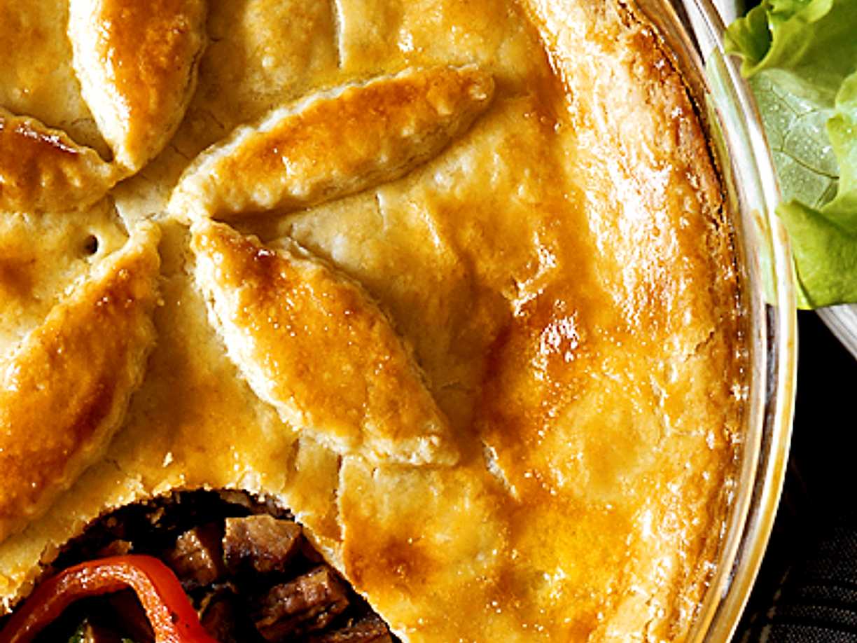 Oxfilé tournedos med grönmögelost, serveras med rödvinssås och palsternackspuré