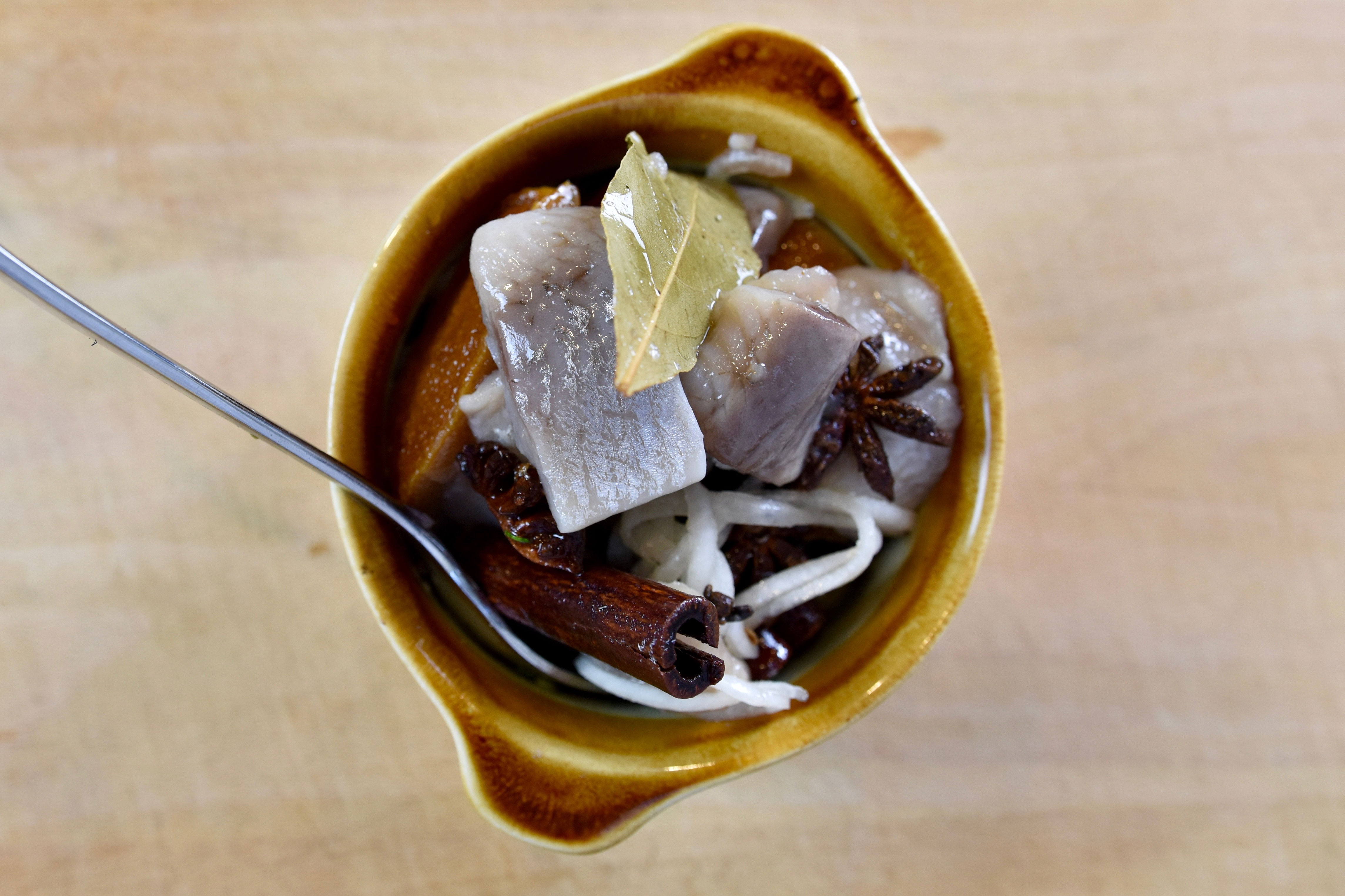 Mjölksjuden lubb med skirat smör, pepparrot och räkor