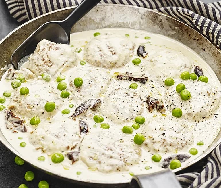 Halstrad torskrygg med bacon- och kaprisströsssel