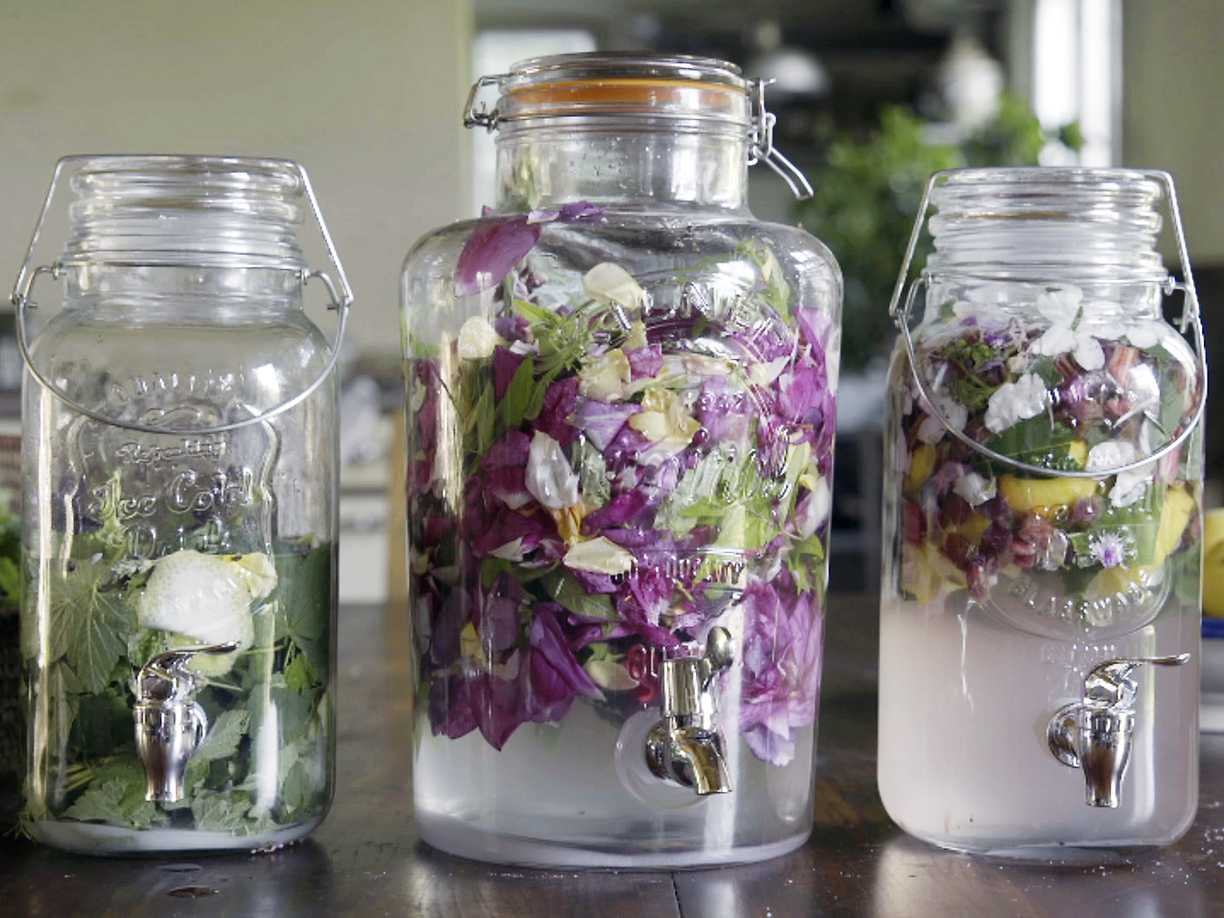 Vatten smaksatt med blomblad