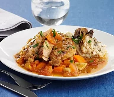 Isterband med gräddstuvad grönsakspytt