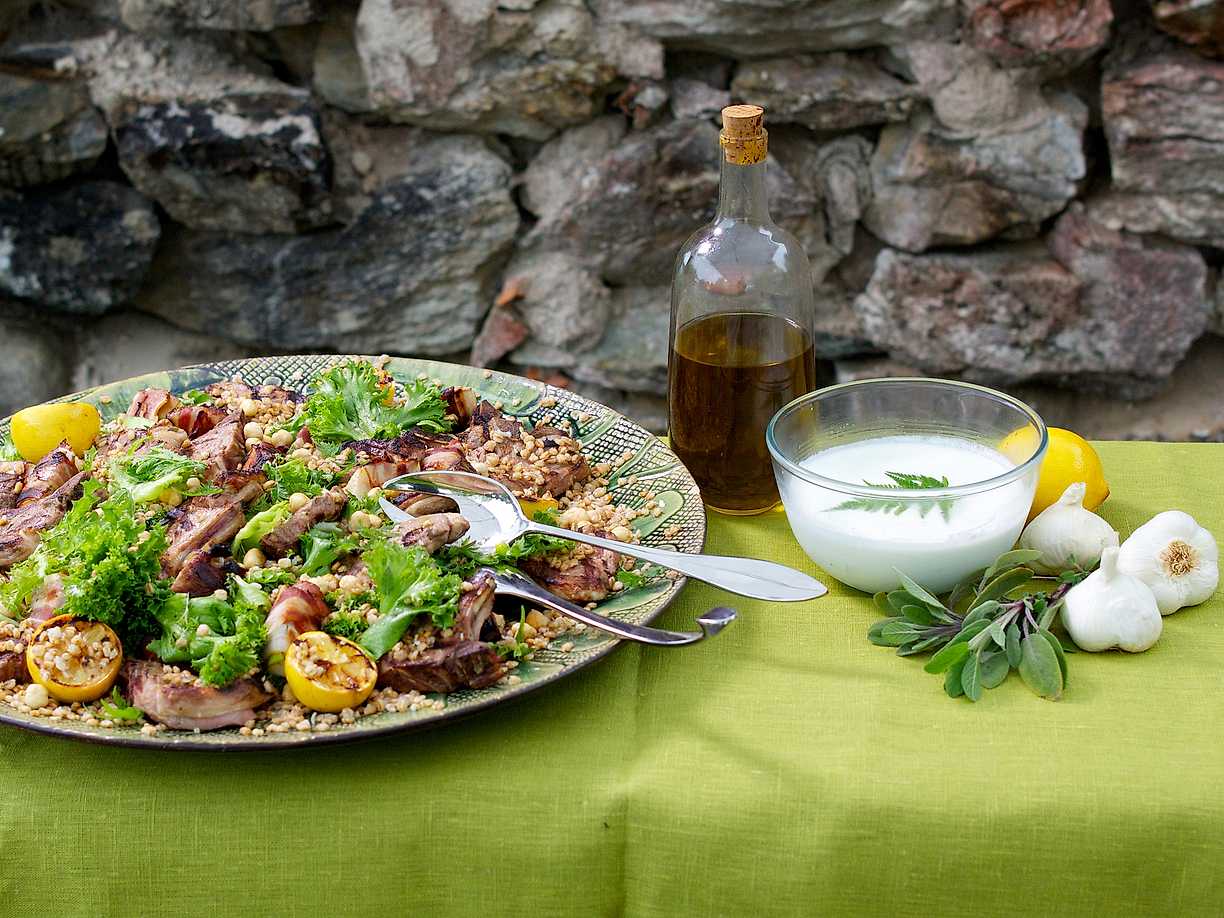 Marinerad lammytterfilé med rostad småpotatis och chèvrecrème