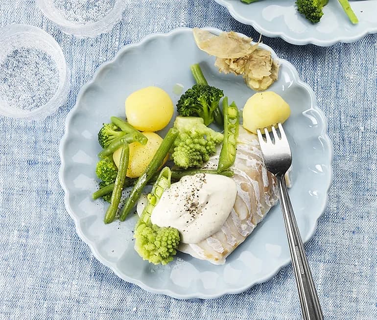 Ugnstorsk med kaviarsås