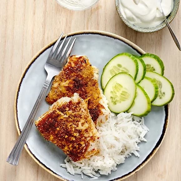 Tacotorsk i ugn med gurka och gräddfil