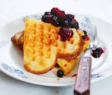Frasvåfflor med rårörda bär och grädde