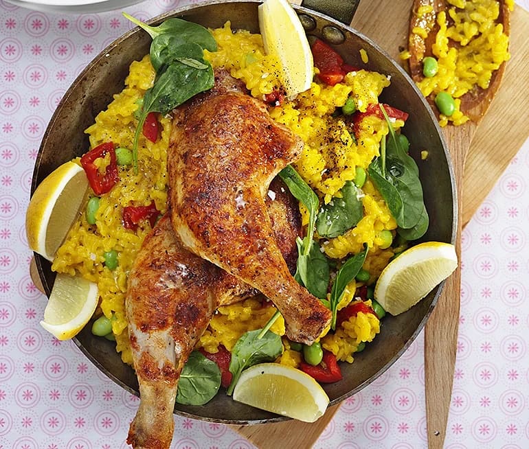 Paella med kycklingklubbor
