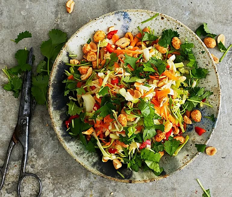 Kyckling med syrlig kålsallad och sojamajonnäs