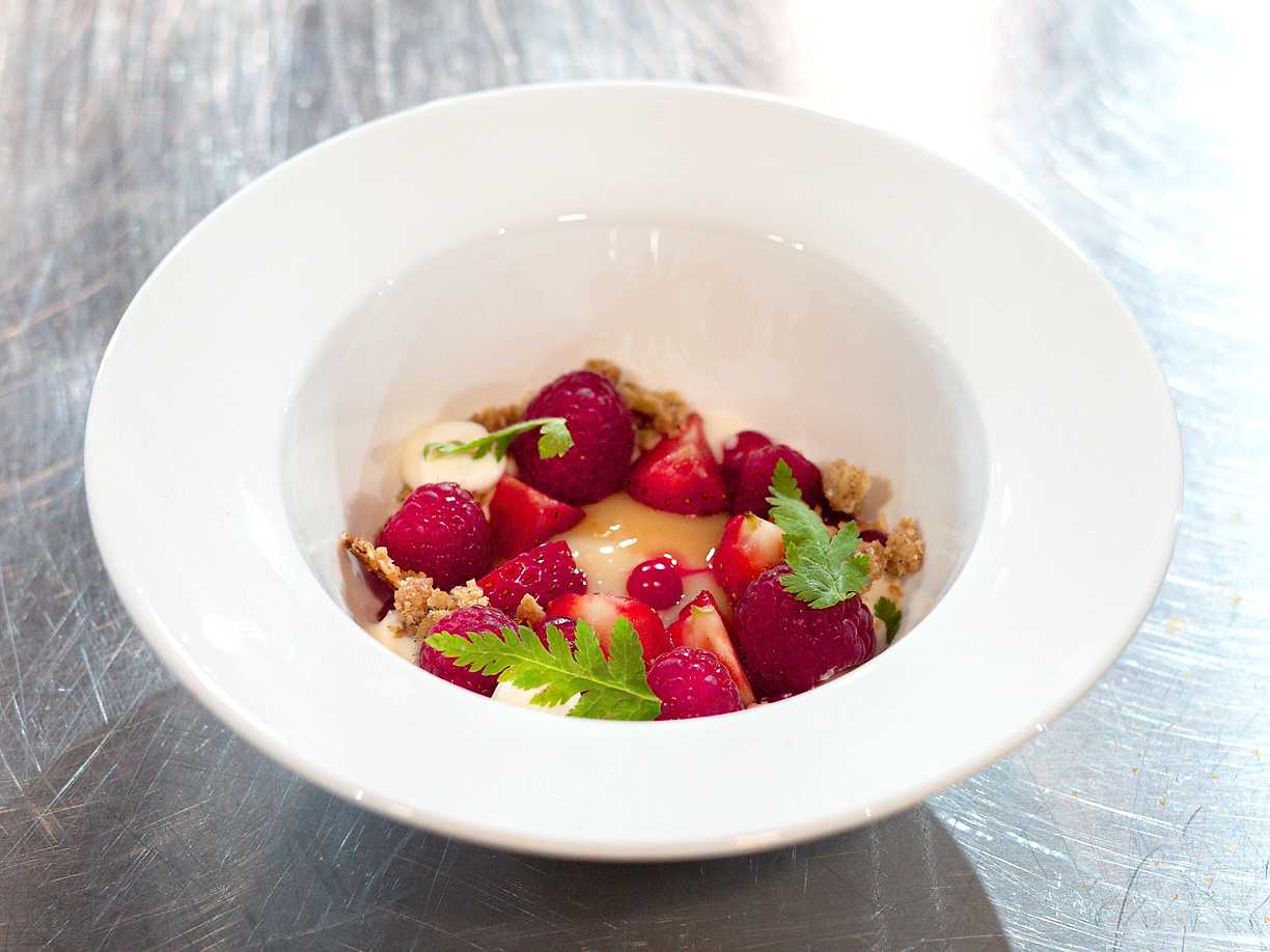 Fryst kornblomst med aprikos, rågbröd samt rosmarin- och vinägerkola