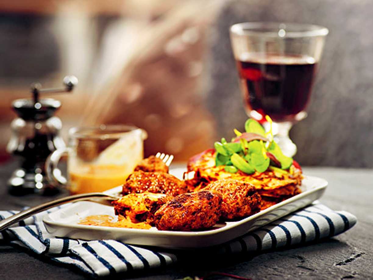 Kryddiga kycklingfärsspett med ajvaryoghurt