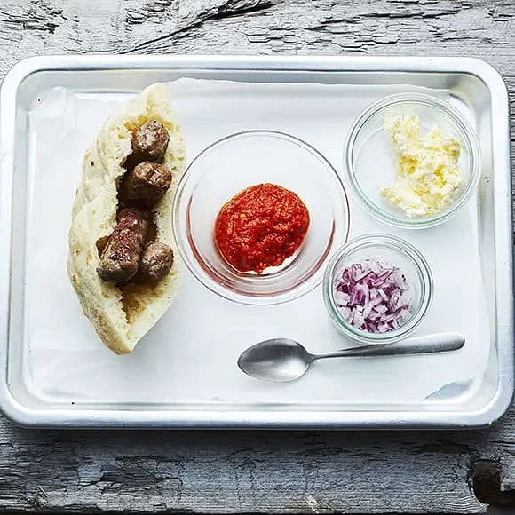 Friterad fetaost med örtig couscous och rödbetstsatsiki