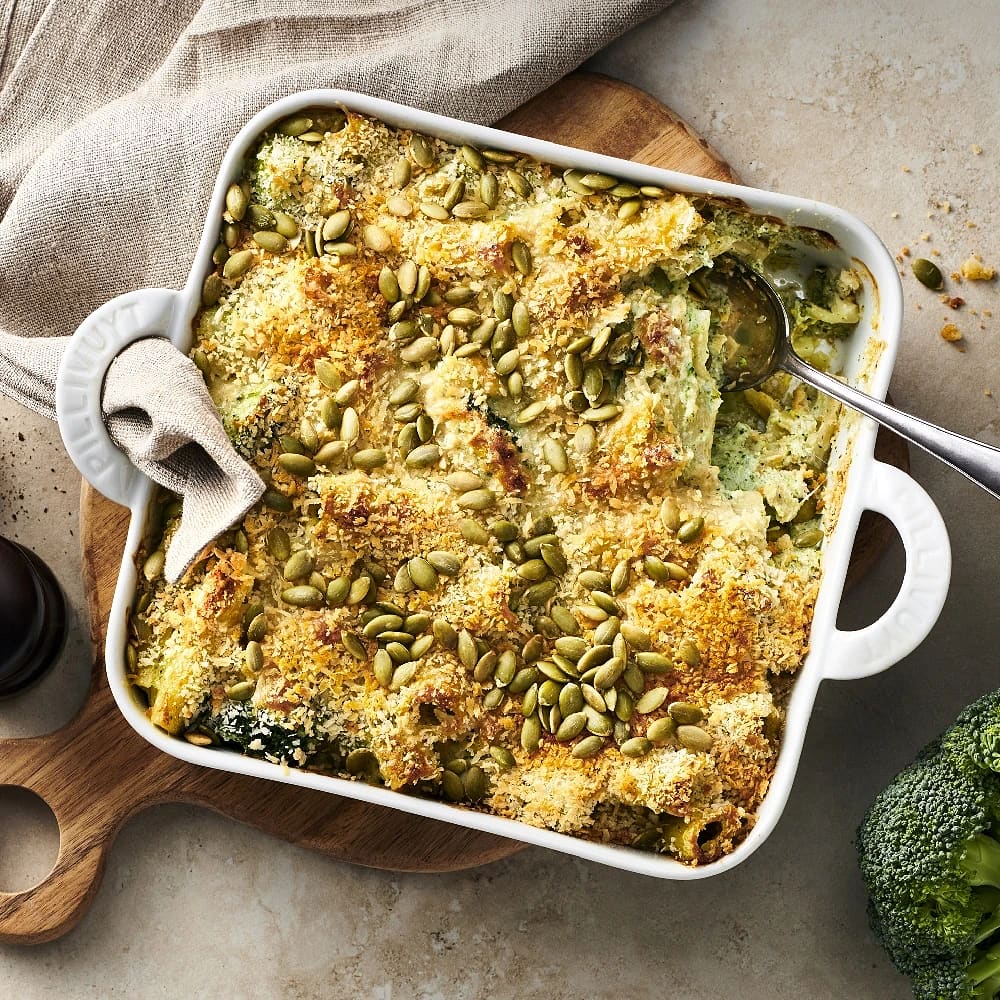 Ost- och persiljegratinerad blomkål med rostat vitlöksmos